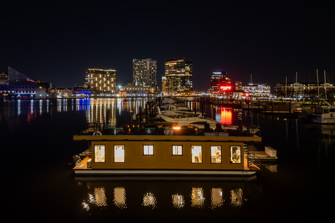 Welcome to FLOHOM 1 | Bay Escape, your home away from shore! Our luxury houseboat is docked at the premier Inner Harbor Marina, with the best waterfront views in downtown...