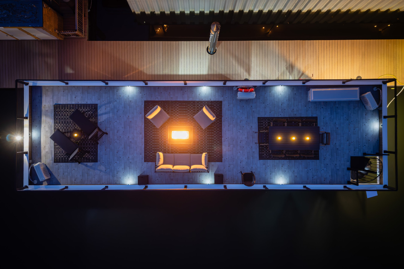 To maintain a peaceful environment for all guests and nearby liveaboards, quiet hours are enforced from 10 PM to 7 AM. FLOHOM 7 | Harbor Hideaway is equipped with indoor and outdoor noise monitoring sensors to measure decibel levels, but these are not active listening or recording devices.