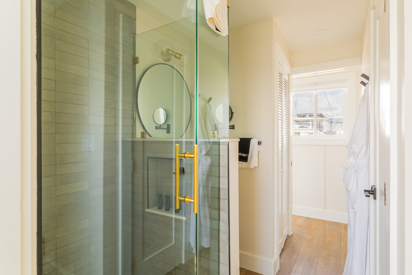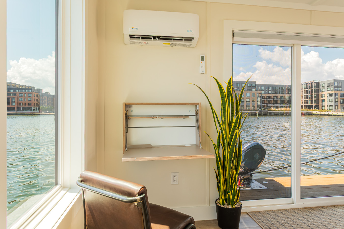 Please close all sliding doors and windows when leaving the boat to ensure security and prevent damage from the elements. Additionally, keep screen doors and windows closed while on the FLOHOM to prevent insects from entering.